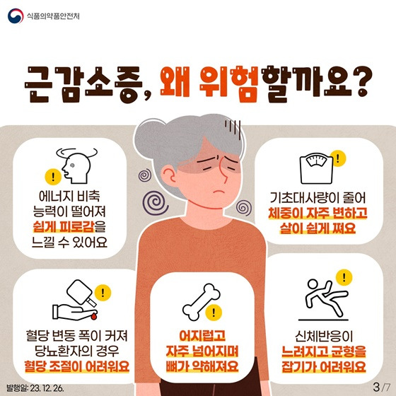 - 만성 질환: 당뇨병, 심혈관 질환 등 만성 질환도 근감소증의 위험 요인입니다.
